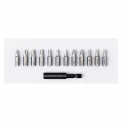 Visseuse Sans Fil Xiaomi Mi Cordless Screwdriver. Tension nominale 3.6V via batterie Lithium-ion 2000mAh. Fournit un couple maximal de 5 Nm (électrique). Vitesse à vide : 200 rpm. Mandrin hexagonal magnétique 1/4". Commande rotative 3 modes (Visser/Dévisser/Verrouiller). Anneau lumineux 3 LEDs intégré pour l'éclairage. Recharge via port USB-C (temps de charge 120-180 min). Livrée avec 12 embouts en acier S2 (PH, PZ, SL, Hex, Torx) et une tige d'extension 60mm. Dimensions : 124 x 130.5 x 42 mm. Poids : 350g (visseuse seule). Inclut un étui de rangement.