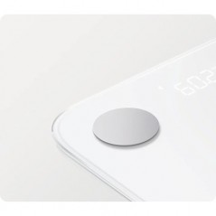 Xiaomi S400 Pèse Personne Impédancemètre. Utilise l'analyse d'impédance bioélectrique (BIA) à double fréquence (haute et basse) pour 25 mesures (poids, IMC, masse grasse, masse musculaire, eau, masse osseuse, BMR, graisse viscérale). Capteur G en acier manganèse haute précision. Plage de mesure : 0.1kg à 150kg (incrément 0.1kg). Surface en verre trempé avec électrodes larges (58mm). Écran LED caché. Connectivité Bluetooth 5.0 à l'application Mi Home/Xiaomi Home (gère 36 profils, auto-reconnaissance). Alimentation : 3x piles AAA (autonomie ~180 jours). Dimensions : 300 x 300 x 24.55 mm. Poids : 1.45kg.