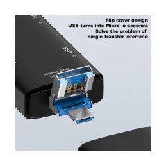 Lecteur de carte mémoire OTG 7-en-1 – Noir – Compatible USB et Type-C pour smartphones, tablettes et PC – Prend en charge 7 types de cartes mémoire (SD, MicroSD, TF, MMC, MS, M2, CF)