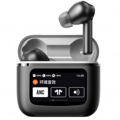 Écouteurs sans fil Jeqang ANC, technologie réduction active de bruit, connectivité Bluetooth, qualité sonore stéréo HD, boîtier de charge avec afficheur LED, microphone intégré pour appels mains libres, commandes tactiles, autonomie prolongée avec batterie rechargeable, design ergonomique, coloris Noir.
