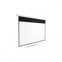 Écran de projection Overmax Semi Automatic 100", dimensions 221 x 124 cm, format 16:9, toile blanche mate anti-reflet, mécanisme semi-automatique à ressort, fixation murale ou plafond, surface de projection grand angle, idéal pour home cinéma, présentations et salles de réunion.