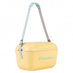 Glacière POLARBOX 20L – JAUNE au design vintage et élégant, idéale pour conserver vos aliments et boissons au frais grâce à une isolation thermique efficace. Dotée d’une sangle réglable en cuir synthétique, elle allie style et praticité. Capacité de 20 litres, parfaite pour pique-niques, plages et escapades.