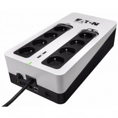 Onduleur Eaton 3S700F, technologie Off-line, puissance 700VA / 420W, équipé de 8 prises FR (protection + sauvegarde), connectivité USB pour gestion d’alimentation, protection contre surtensions, courts-circuits et parasites, design compact pour bureau, installation plug & play, coloris Blanc.