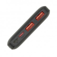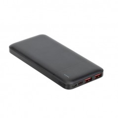 Power Bank RIVACASE VA2101 22.5 W 10 000 mAh – Noir – alliant capacité généreuse (10 000 mAh, 37 Wh) et charge rapide jusqu’à 22,5 W (QC 3.0 & PD 3.0), elle est idéale pour recharger smartphones, tablettes et même certains PC portables. Elle dispose de deux sorties (USB-A et USB-C) et deux entrées (USB-C et micro-USB) pour une flexibilité maximale. Son boîtier compact (67 × 16 × 140 mm, 220 g) est élégant et durable, avec un indicateur LED précis. Recharge complète du power bank en 5 à 6 h avec un chargeur 5 V/2 A.