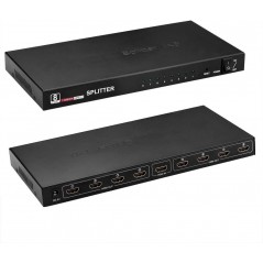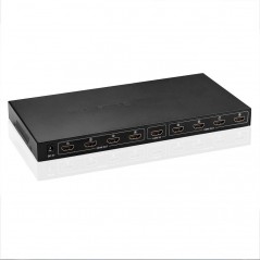 Splitter HDMI 8 ports (1 Entrée / 8 Sorties) : Conçu pour distribuer un signal vidéo Full HD vers plusieurs appareils (HDTV, lecteur DVD/Blu-Ray, consoles, récepteurs). Il dispose d’1 port HDMI en entrée et 8 ports HDMI en sortie, avec une version HDMI 1.4 et des connecteurs 19 broches. Compatible 3D et HDCP, il prend en charge les résolutions 480i/p, 576i/p, 720p, 1080i/p, avec une bande passante jusqu’à 4,95 GHz et une fréquence de 2,25 Gbps / 250 MHz. Distance maximale : 15 m. Alimentation : AC 110-240V (50-60Hz), DC 5V.