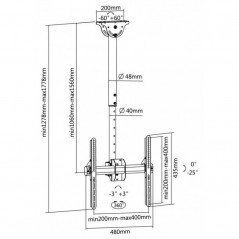 Le support de plafond pivotant pour téléviseur 32" à 55" offre une fixation robuste et réglable, supportant un poids maximal de 50 kg. Il est compatible avec les standards VESA de 200x200 à 400x400, et permet une inclinaison jusqu’à -25° ainsi qu’un pivotement à 360° pour un angle de vision optimal. Sa hauteur est réglable de 1060 à 1560 mm, ce qui le rend idéal pour les espaces commerciaux ou résidentiels. Conçu en métal résistant, il pèse 5,84 kg, s’installe solidement au plafond et bénéficie d’une garantie de 1 an.
