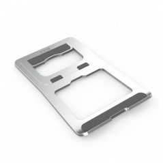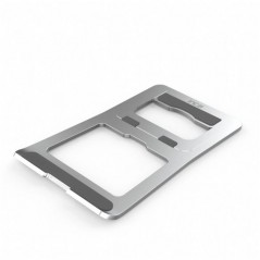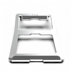 Support INCA INC-121S pliable en aluminium avec finitions en caoutchouc, conçu pour les PC portables jusqu’à 15,6 pouces, tablettes ou livres. Sa conception creuse optimise la dissipation thermique, tandis que son angle de 18° assure une position ergonomique. Léger (355 g), compact (232,5 x 214 x 68 mm une fois replié), il intègre des pieds en silicone antidérapants pour plus de stabilité. Idéal pour un usage mobile, avec une épaisseur de 4 mm et une finition argentée élégante.