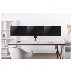 Le Gembird MA‑D4‑01 est un support de bureau 4‑écrans conçu pour accueillir jusqu’à quatre moniteurs 13″–32″. Il utilise une fixation par pince sur le bureau et offre inclinaison, pivot, rotation, extension/retrait pour chaque écran. Compatible VESA 75×75 et 100×100 mm, il supporte jusqu’à 10 kg par écran, avec un système de gestion des câbles intégré. Construit en acier et plastique avec finition noire, il offre une installation robuste, flexible et ergonomique pour les espaces multitâches.