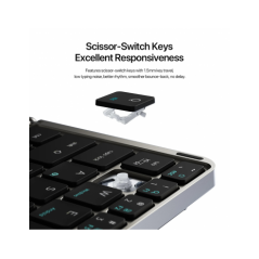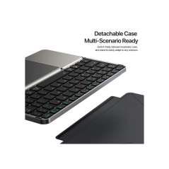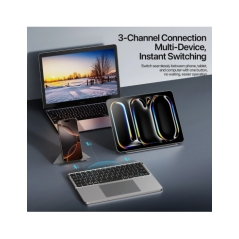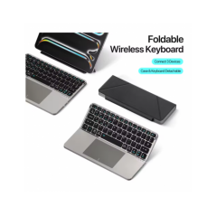 Clavier pliable Bluetooth avec touchpad et étui – iBOX-11 : clavier sans fil QWERTY avec Bluetooth 5.0, connectivité simultanée jusqu’à 3 appareils. Design pliable ultra-compact, idéal pour les déplacements. Touches à mécanisme ciseaux offrant une frappe précise et silencieuse. Équipé d’un pavé tactile pour une navigation fluide sans souris. Alimentation via USB-C, temps de charge de 1 à 2 heures, autonomie jusqu’à 200 heures d’utilisation. Compatible avec Windows, macOS, iOS et Android. Livré avec un étui en cuir détachable servant également de support pour tablette ou smartphone. Dimensions plié : 25,2 x 9,6 cm, dimensions déplié : 25,1 x 18,2 cm.